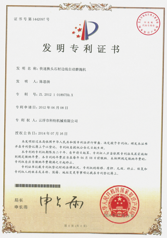 企業(yè)組建了“云浮市石材機(jī)械裝備工程技術(shù)研究開發(fā)中心”,并與高校和科研院所密切合作,致力于光機(jī)電一體化產(chǎn)品的研發(fā)、生產(chǎn)、銷售和服務(wù)。主要產(chǎn)品有框架鋸、全自動(dòng)連續(xù)磨拋機(jī)、橋式自動(dòng)切割機(jī)、全自動(dòng)仿形石線機(jī)、數(shù)控金剛石繩鋸、裁切機(jī)等。產(chǎn)品具有自動(dòng)化程度高、加工精度高和生產(chǎn)效率高等特點(diǎn)。產(chǎn)品除國內(nèi)銷售外,還出口到歐美、東南亞、韓國、印度、中東、非洲、俄羅斯、澳大利亞等國家和地區(qū),深受用戶好評!皹蚴阶詣(dòng)切割機(jī)”被認(rèn)定為廣東省高新技術(shù)產(chǎn)品,擁有發(fā)明專利1項(xiàng)、實(shí)用新型專利1項(xiàng)。